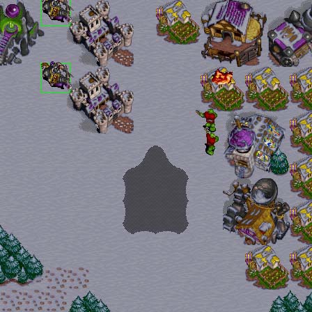 This situation is rather funny. This happened when Cox was playing Single #36. He eliminated all opponents, but level didn't end. Suddenly his town became attacked by this two peons. Cox had no units in town, so he had to train new palladins to be able to kill this dangerous peons. |